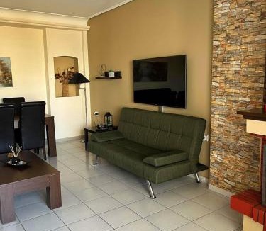 AM Apartment on the beach is located in Lefkandi Chalkidas, just 3.2 miles from Sport Center of Agios Nikolaos and 15 miles from T.E.I. Chalkidas. This beachfront property offers access to a balcony and free Wifi. The accommodation features an elevator and private check-in and check-out for guests. Featuring a terrace and mountain views, the spacious apartment includes 1 bedroom, a living room, satellite flat-screen TV, an equipped kitchen, and 1 bathroom with a bath and a shower. Featuring air conditioning, this unit has a dressing room and a fireplace. The apartment offers bed linen, towels, and laundry service. There is an on-site coffee shop. A baby safety gate is also available at the apartment, while guests can also relax in the garden. Terra Vibe Park is 31 miles from AM Apartment on the beach. Eleftherios Venizelos Airport is 61 miles from the property.