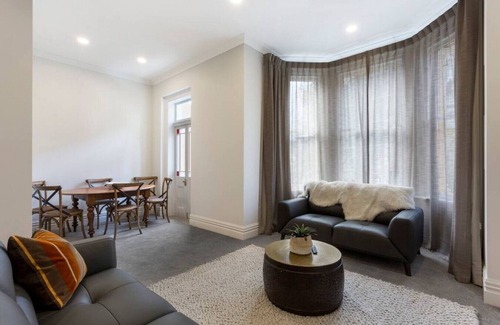 Upstairs offers one additional bedroom, a modern laundry with washer and dryer (detergent supplied) and the second bathroom with shower and toilet. There is also a stunning living room, a new kitchen plus dining with outlook to St Paul’s Cathedral.