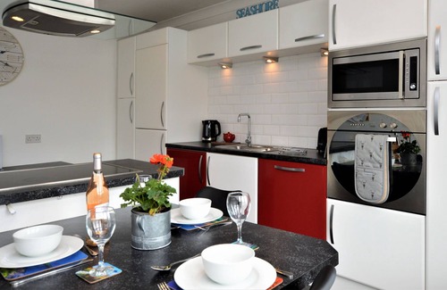 With your own private entrance, the interior staircase leads you to a bright and welcoming living space. The kitchen is spacious and fully equipped with all your modern appliances. The dining area is a cosy space for casual meals, with lovely bay windows to make the most of the view over the harbour. Adjacent is the spacious living room where further views dominate the living space, with a cosy wood burner and comfortable sofas. Stylish and contemporary guests will appreciate all the home comforts this holiday house offers.