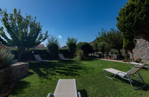 The Mythos Apartment is a charming 45 square meter apartment nestled just 250 meters from the splendid sandy beach renowned for its crystal-clear waters in the Damnoni area. This apartment comfortably accommodates up to 4 individuals and offers either 2 single beds (convertible into a spacious double bed) or a double bed. It boasts an open-plan living area with a fully equipped kitchenette (separated by a wall from the main bedroom), a dining table, a sofa bed that can be transformed into two single beds, and a television set. There is a single bathroom with a shower and WC. The expansive balcony, furnished with patio furniture, provides delightful views of the surrounding landscape.Outside, a garden area with a lush lawn and sun chairs beckons. A parking space is also at your disposal. The apartment is perfectly positioned within walking distance of local taverns and the enchanting Damnoni beach. Furthermore, it's only 3 kilometers from the renowned Plakias area, famed for its tourist amenities, water sports, shops, supermarkets, restaurants, cafes, bars, and more. A car is unnecessary unless you intend to explore the exquisite southern region of Crete.