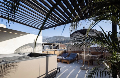 Pappous Central Suite is a brand-new luxury escape in the heart of Malia, housed in a beautifully renovated building opening in 2025. "Pappous," meaning grandpa in Greek, symbolizes tradition, wisdom, and the warmth of true Greek hospitality. This elegant suite seamlessly blends modern smart features with traditional charm, offering a jacuzzi, smart lighting, and high-end amenities for up to 2 guests.