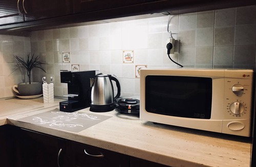 Kitchen fully equipped oven, kettle ,toaster, espresso machine ,coffe machine , extra microwave fridge-freezer coocking pans , 6pax plates and glasses etc