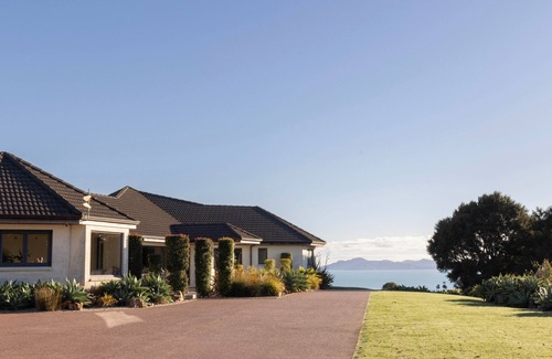 Tio Point is located on a private peninsula on the Clevedon Coast, offering breathtaking panoramic sea views and easy beach access. Just a 150-meter walk down the driveway, you'll find yourself at the serene beach shoreline.