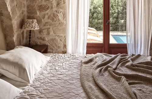 There's an eclectic theme to the extraordinary interior of the home, thanks to the owners' desire to blend country cottage with authentic style. Layered rugs and unique collectables make a warm and welcoming home with more than a dash of boudoir. This captivating holiday home boasts exquisite interiors that exude a certain ethereal elegance and calm, as well as promises guests arevitalisingstay to renew body, mind and soul in it’s 150m2 space. The authentic villa can comfortably accommodate up to 6 guests in its 3 bedrooms and one more guest can be accommodated at a folding bed in the living-cum area or can be added in the ground floor bedroom. The villa also features two spacious bathrooms one on the ground floor and one on the first floor, featuring a bathtub. Maximum Occupancy is 7 guests. The Bespoke Home is set on the ground and first floor. Entering the iconic residence you will find a captivating living-cum area with a smart 50’TV, an exquisite fully equipped kitchen ideal for preparing culinary wonders and a sensory dinning area for togetherness time with loved ones. All bedrooms are effortlessly and elegantly furnished promising a blissful night's sleep after the day's busy adventures. All bedrooms are fully equipped with beds (High Quality natural mattresses and premium linen), fitted wardrobes, wonderful settings and include air conditioning.